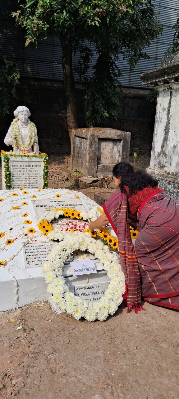 Floral tribute to H L V Derozio on his death anniversary on 26th December, 2025 at the South Park Cemetery, where he was put to rest.