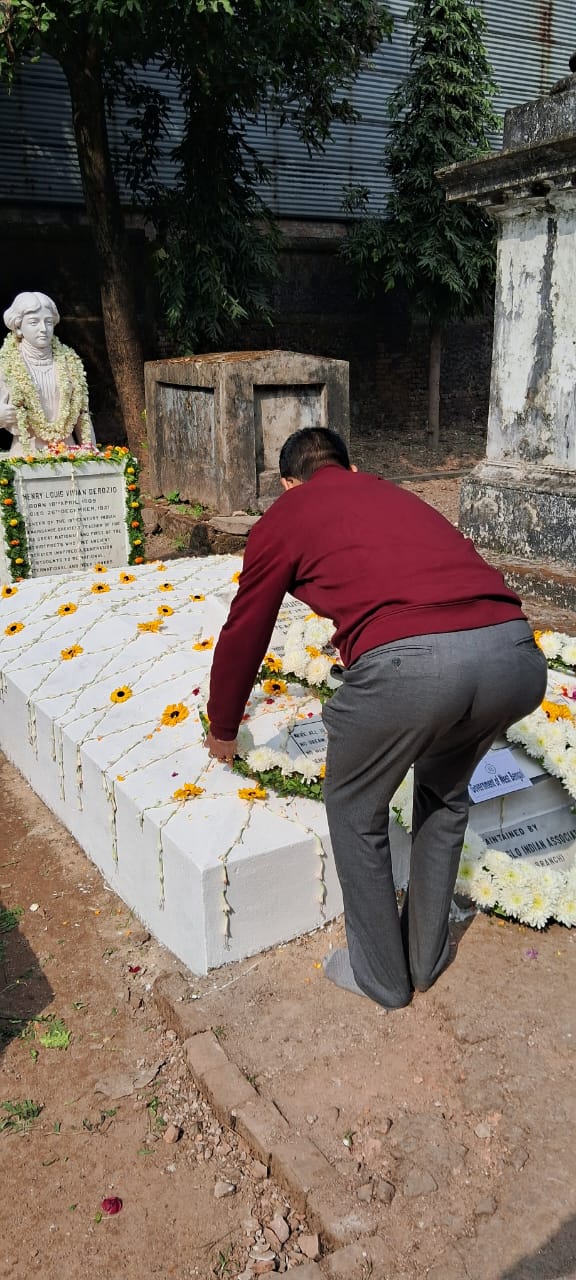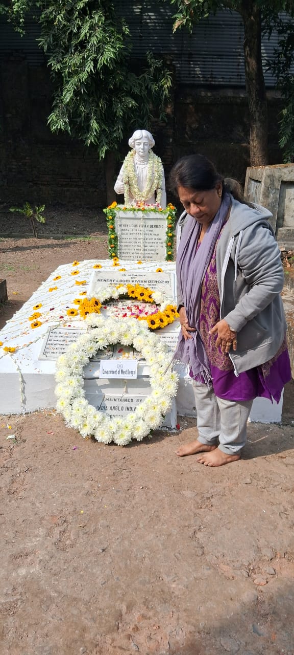 Floral tribute to H L V Derozio on his death anniversary on 26th December, 2025 at the South Park Cemetery, where he was put to rest.